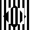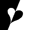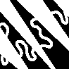 All examples are black and white images, partitioned by lines such that crossing a line switches the background color and the foreground color. (Sometimes it is not clear which is "background" and which is "foreground".) In the space between two dividing lines, there is a black and white scene; the outlines of the shapes are curves dividing black from white. Images sorted left are such that each outline-curve present in a scene that comes in contact non-tangentially with a dividing line continues across the dividing line, across which the black and white sides of it switch.
