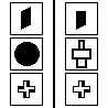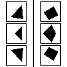 BP836 Image of a Bongard Problem with solution about a geometrical symmetry (invariance under spatial transformation) vs. not so.