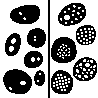 Left examples are quantity-comparison Problems in which the dividing point on the spectrum separating the sides lands between them. Right examples are quantity-comparison Problems in which the dividing point is the entirety of one of the sides (always the left side, for clarity).